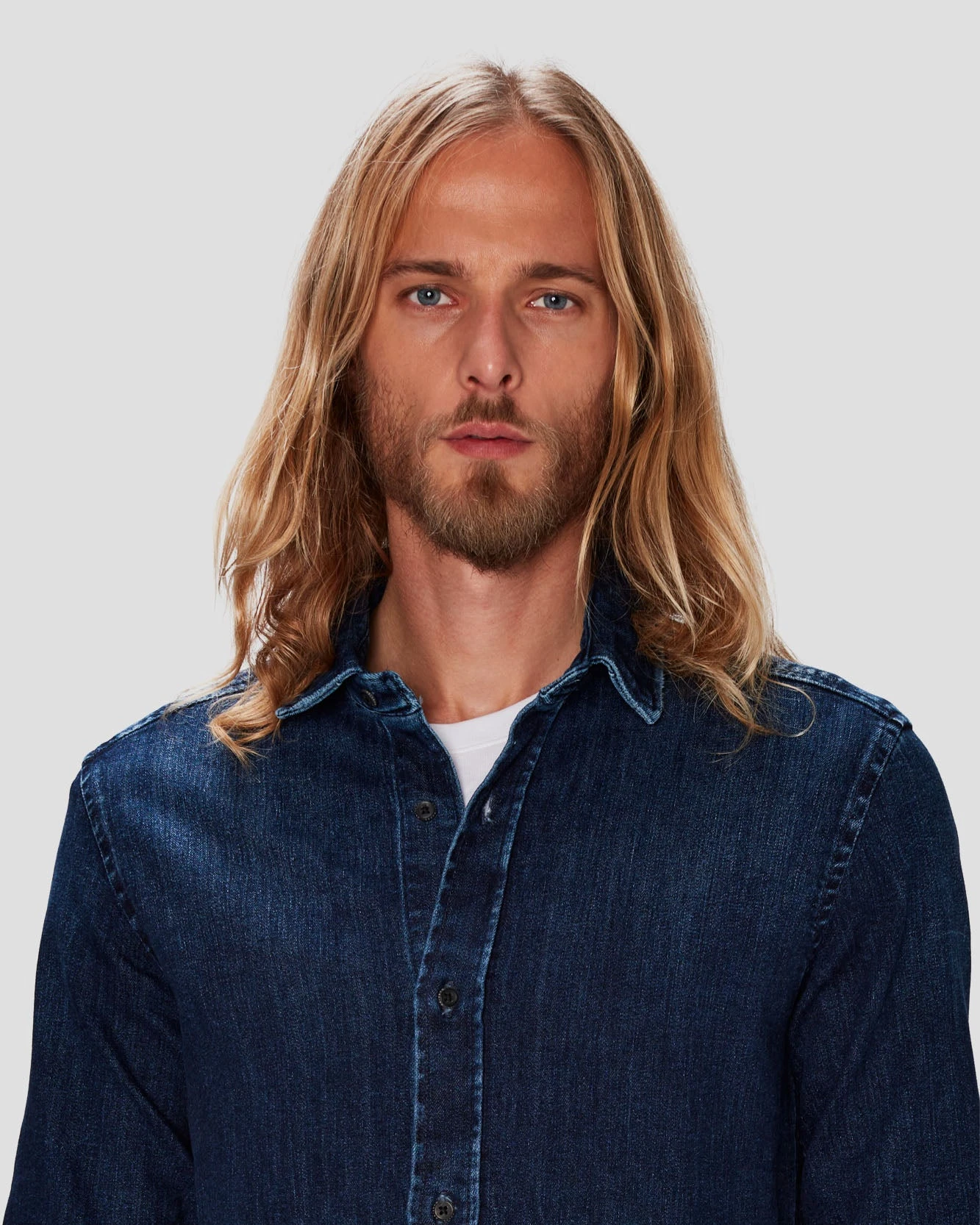 Put on a men’s shirt that is pure comfort but gives you the ultimate polished look. An essential update to the classic denim, button-up shirt, this style is crafted in Airweft, our popular lightweight Japanese denim. With a clean front, this one wears well on its own or open over a tee. Feel cool and casual, with this well-fitted shirt.