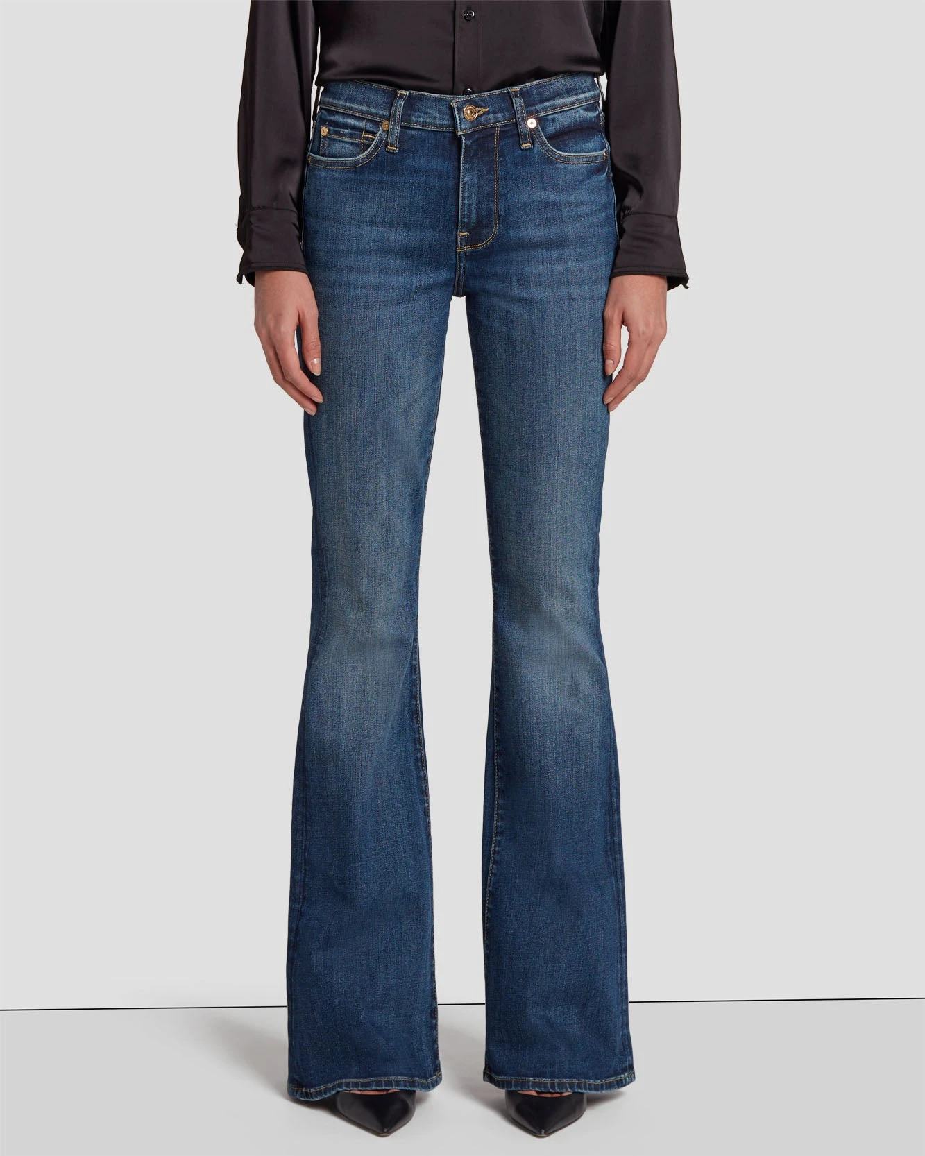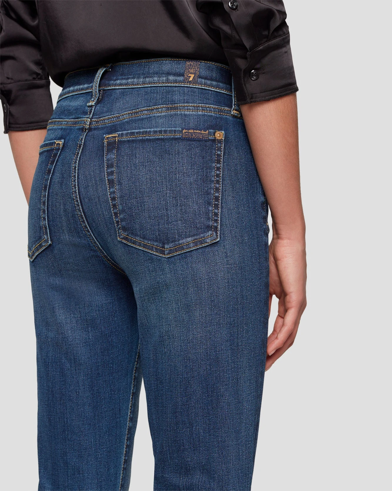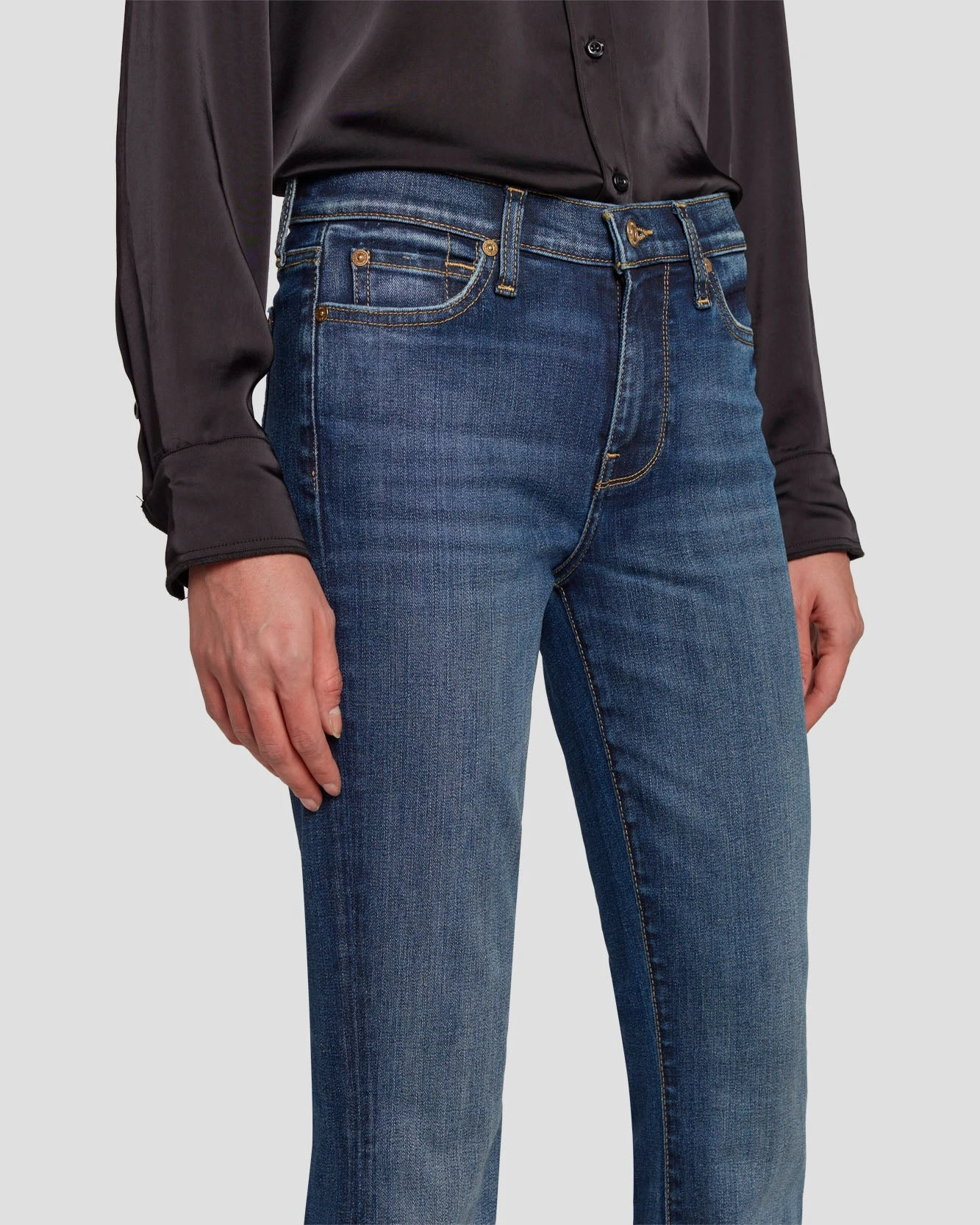 A mid rise and slim through the hip fit gives way to a flared finish below the knee with this pair of women’s denim. Crafted in a dark wash for a more monochrome look, this is a jean that is classic and versatile with whatever you wear. Style this pair of women’s jeans with a fitted top to make the most of Ali’s leg-lengthening effect.