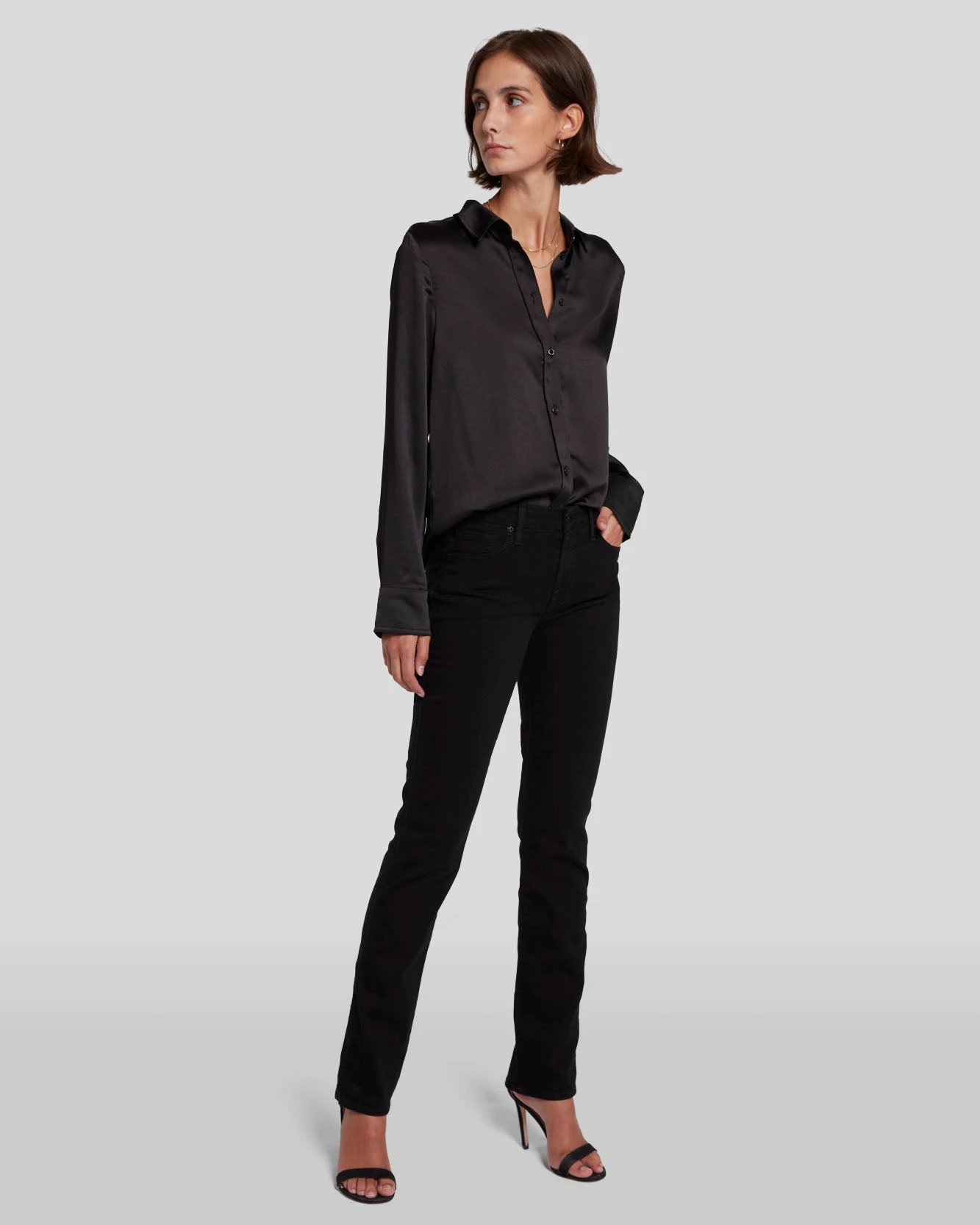 The mid-rise, straight leg jean is a must-have silhouette in every denim collection. This one comes in our ultra-light B(air) stretch denim for a super soft and stretchy feel, and the rinsed black wash offers an effortless upgrade to your everyday looks.