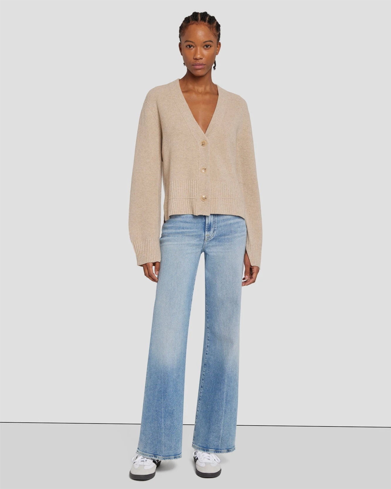 7 For All Mankind Cashmere Cardigan In Oatmeal