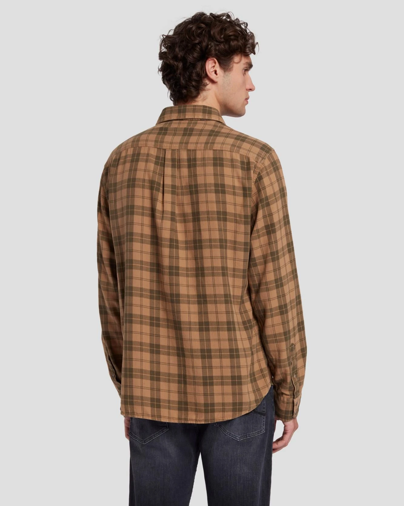 Shades of fall. This tonal neutral button-up features two patch pockets and a classic check pattern for that laid-back ease. Wear it buttoned up or leave it open over a plain tee.