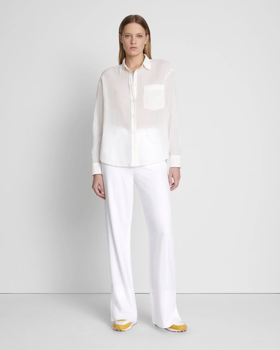 A feminine take on the classic button-down shirt with all of the polish and none of the fuss. Made from lightweight Pima Cotton Voile, this slightly sheer collared women’s button-down has a relaxed fit and features subtle star embroidery, a slightly dropped shoulder, and a patch pocket at the chest.