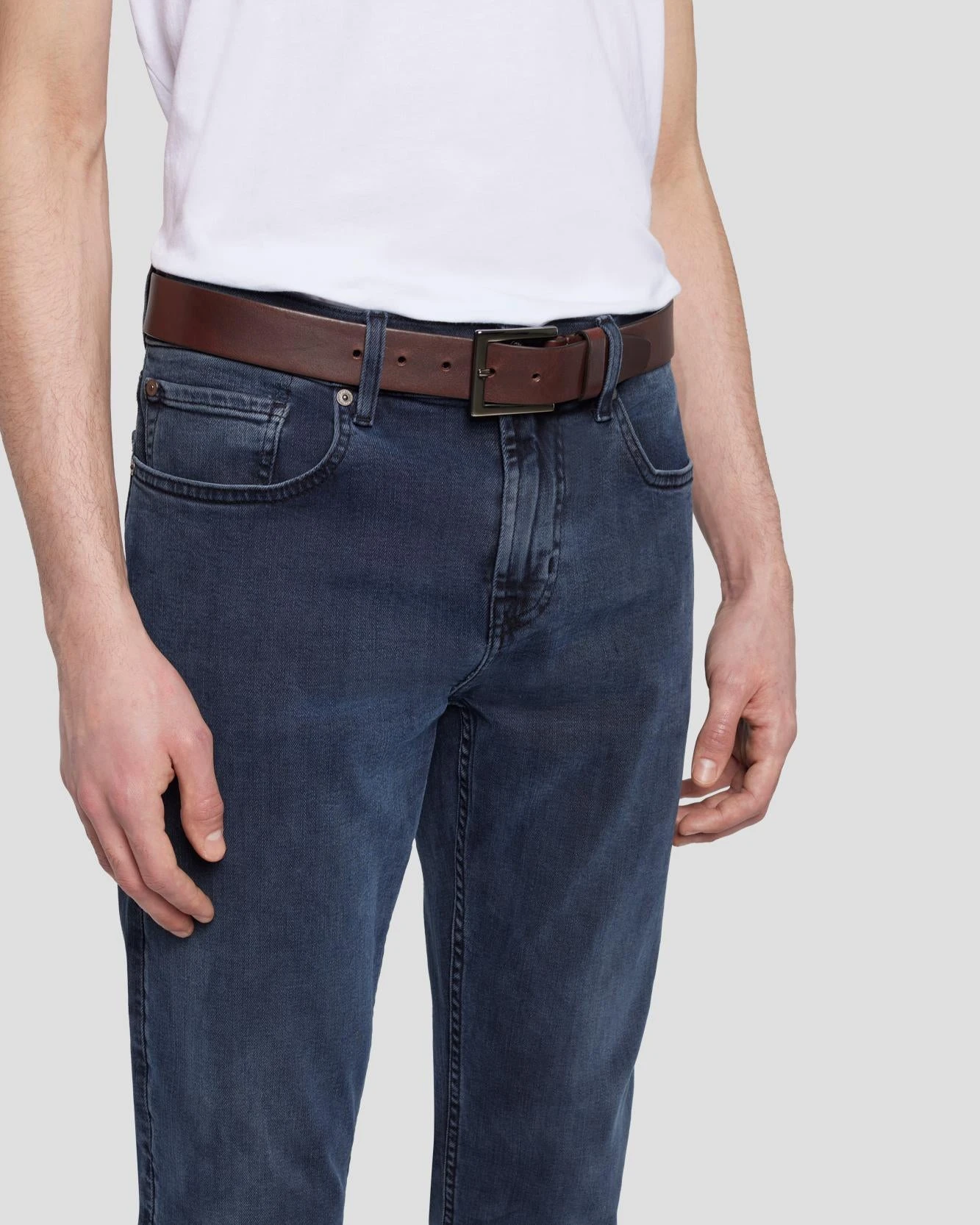 A forever wardrobe staple. Our Classic Leather Belt is finished with a square gunmetal buckle and looks great with light wash and dark wash denim alike.