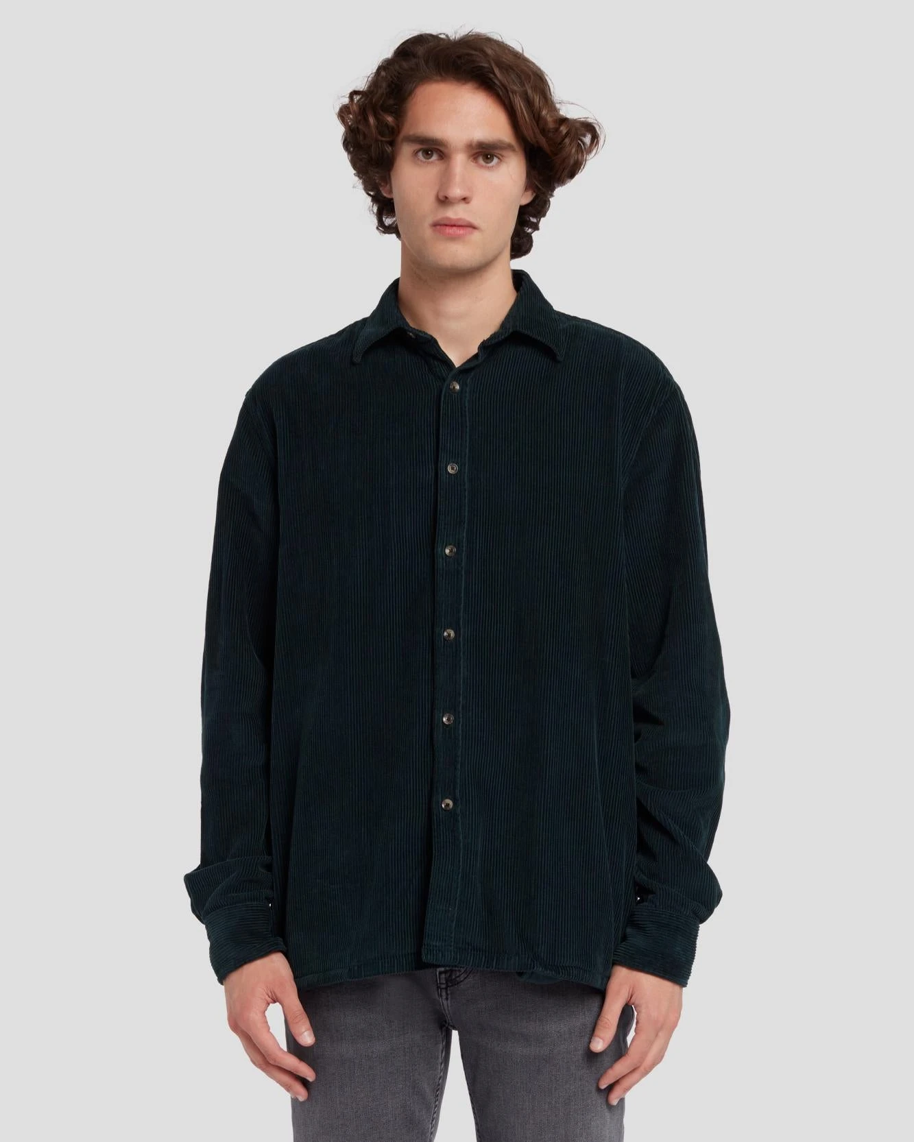 7 For All Mankind Corduroy Overshirt In Hunter Green