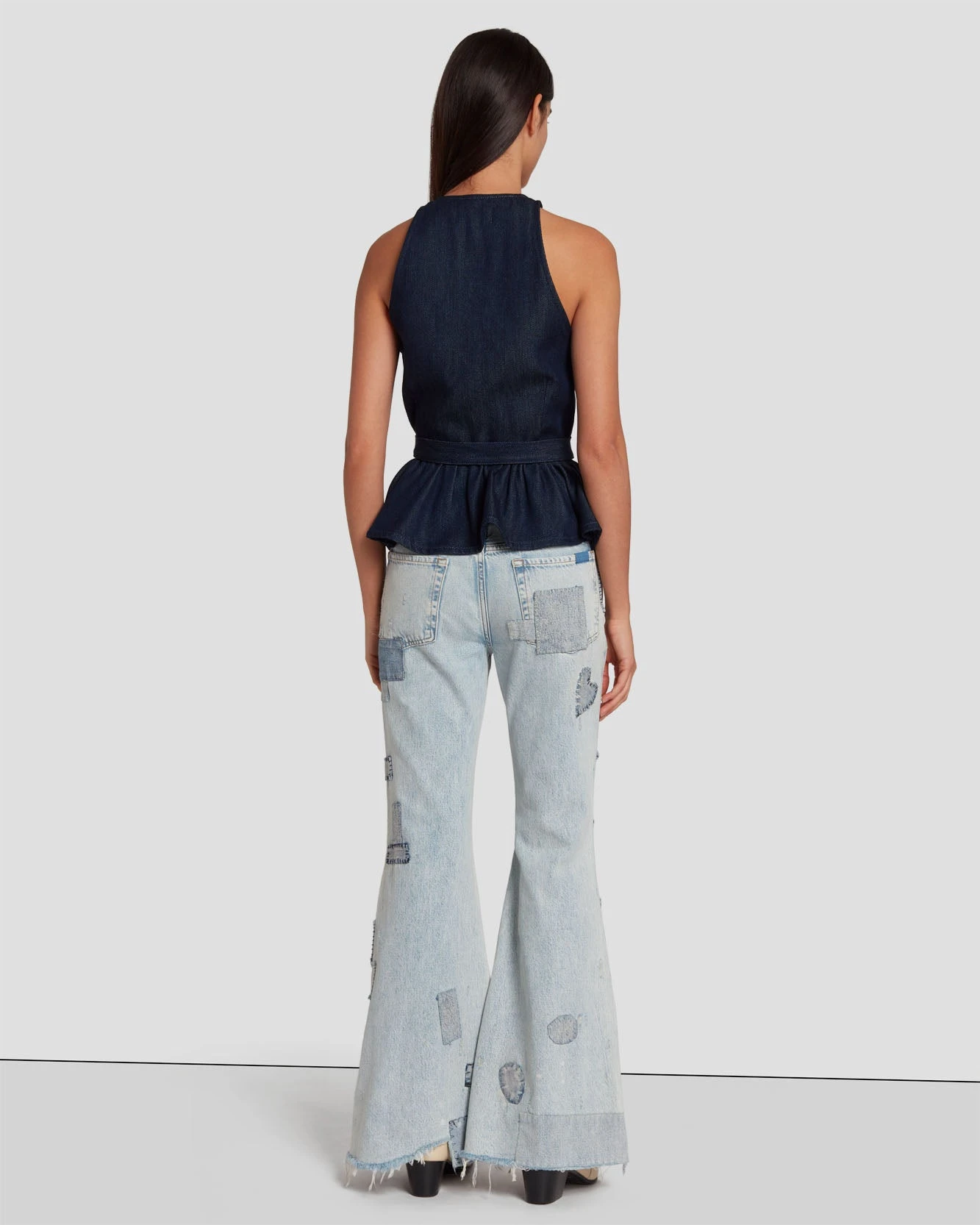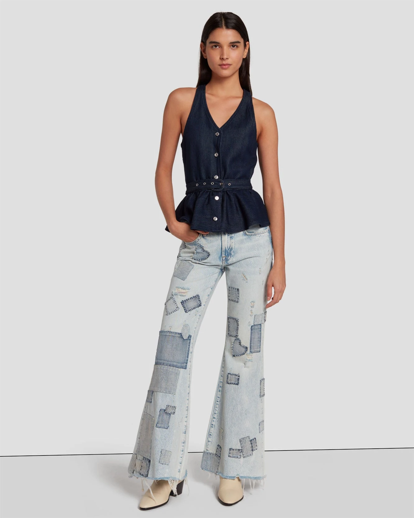Our Denim Lustre collection is crafted from biodegradable and compostable fabrics for breathable long-lasting comfort and a super-soft hand feel. This vest is a sleeveless, belted top that features front button details and a peplum silhouette for added style. Pair this denim top with your favorite jeans for an effortless look.