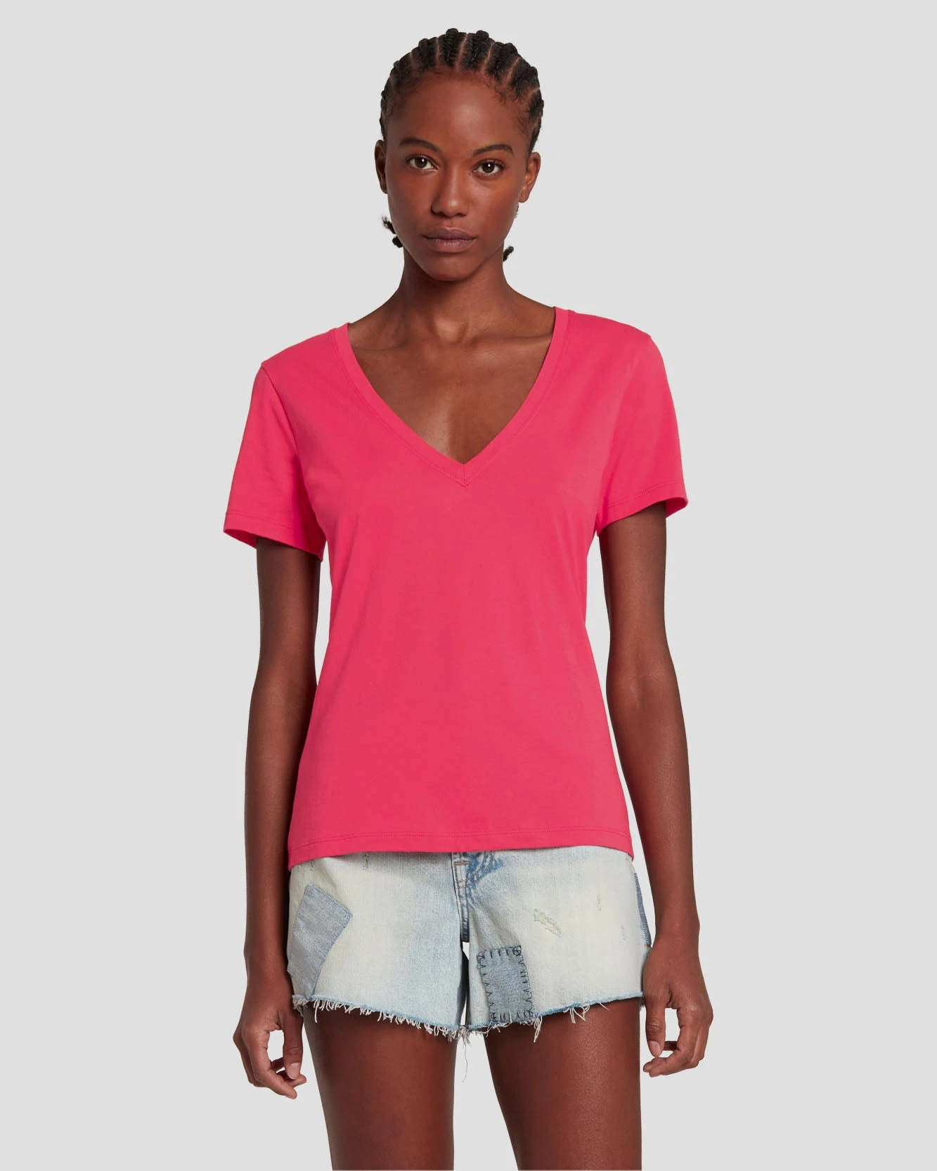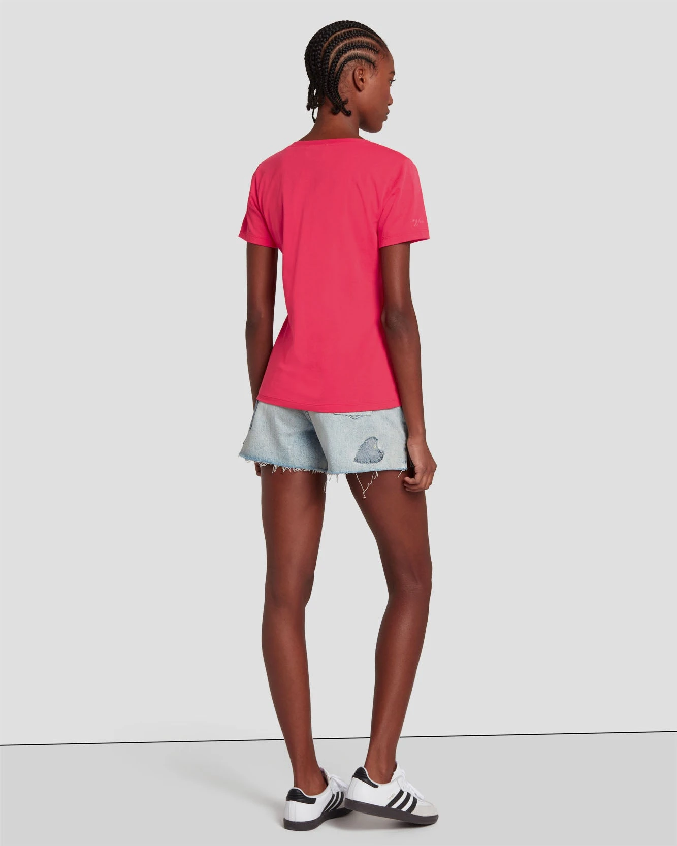 A relaxed staple to add to your collection of everyday basics. This classic v-neck is crafted in in soft Pima Cotton and features an easy silhouette that goes great with all your denim. 7 fam is tonally written on the sleeve to make this exclusive women’s t-shirt even better.