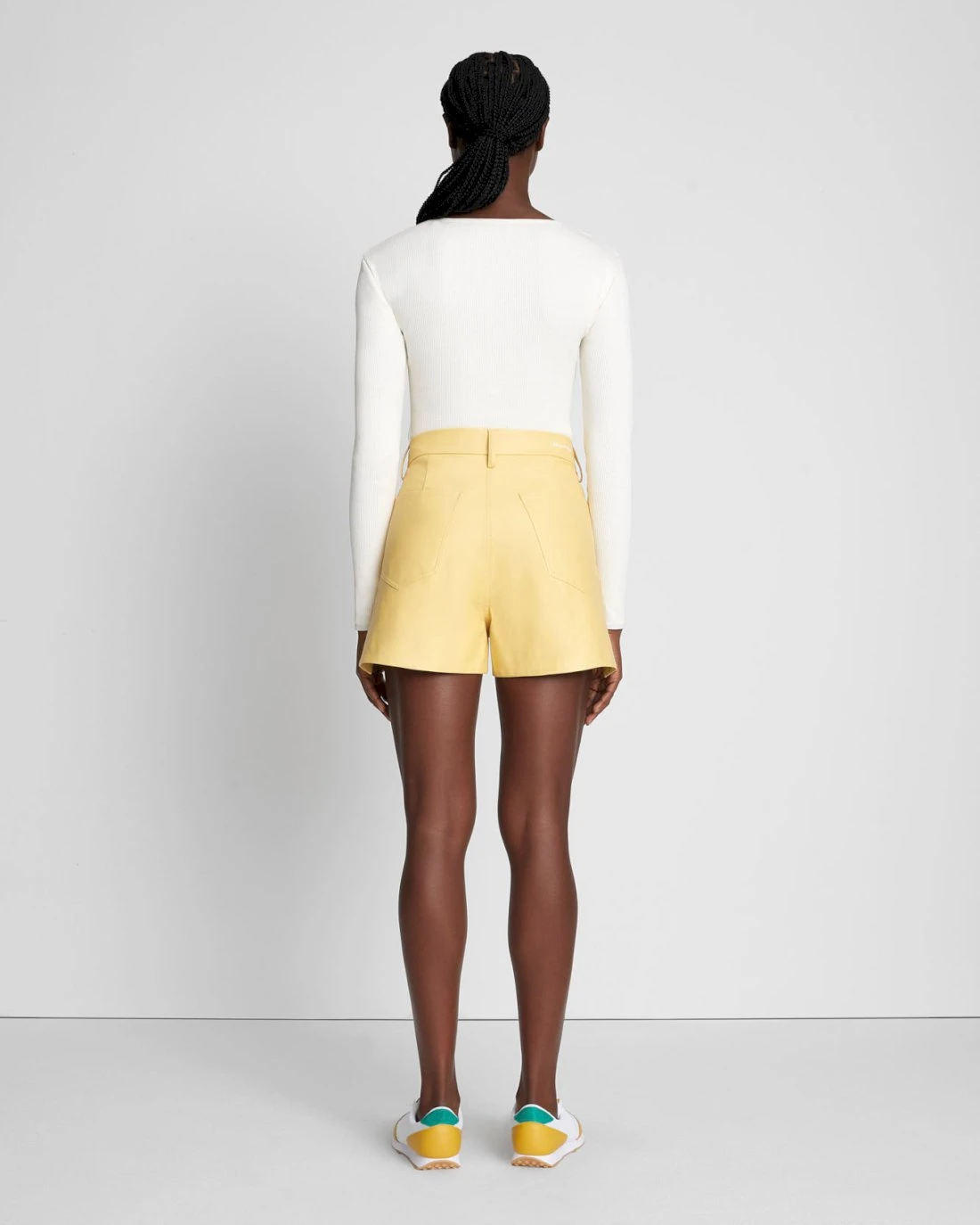 These bright and bold, faux leather shorts feature a high-waisted silhouette, and flattering pleats at the front. The step hem detail adds a bit of length to the back. They look as chic with sneakers and an oversized hoodie as they do with a blazer and heels.