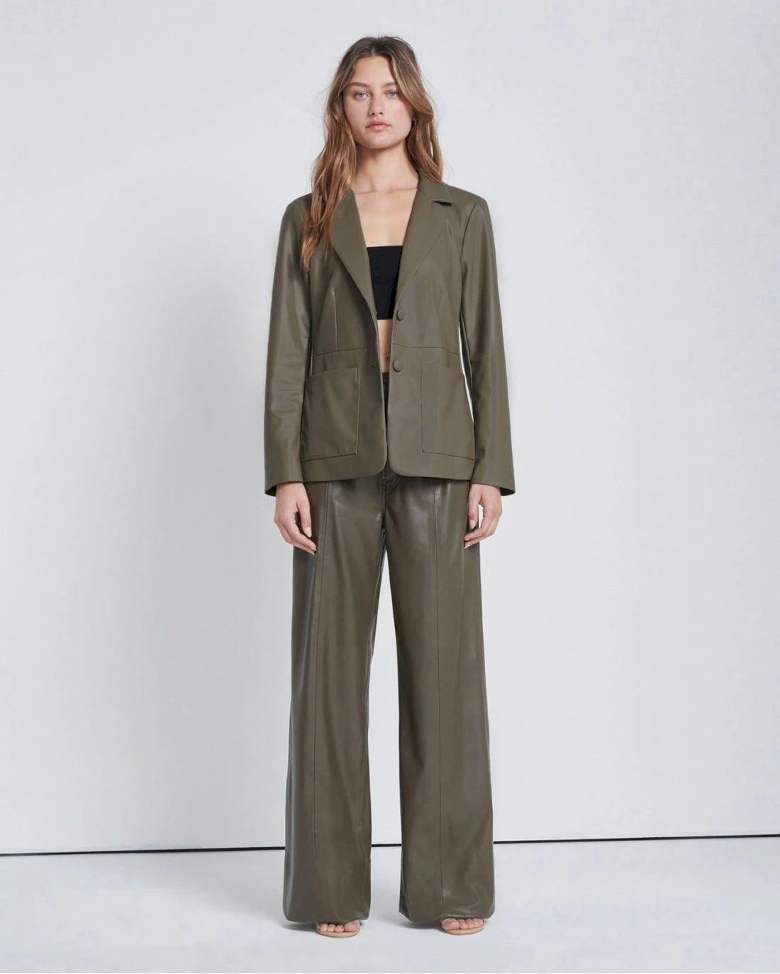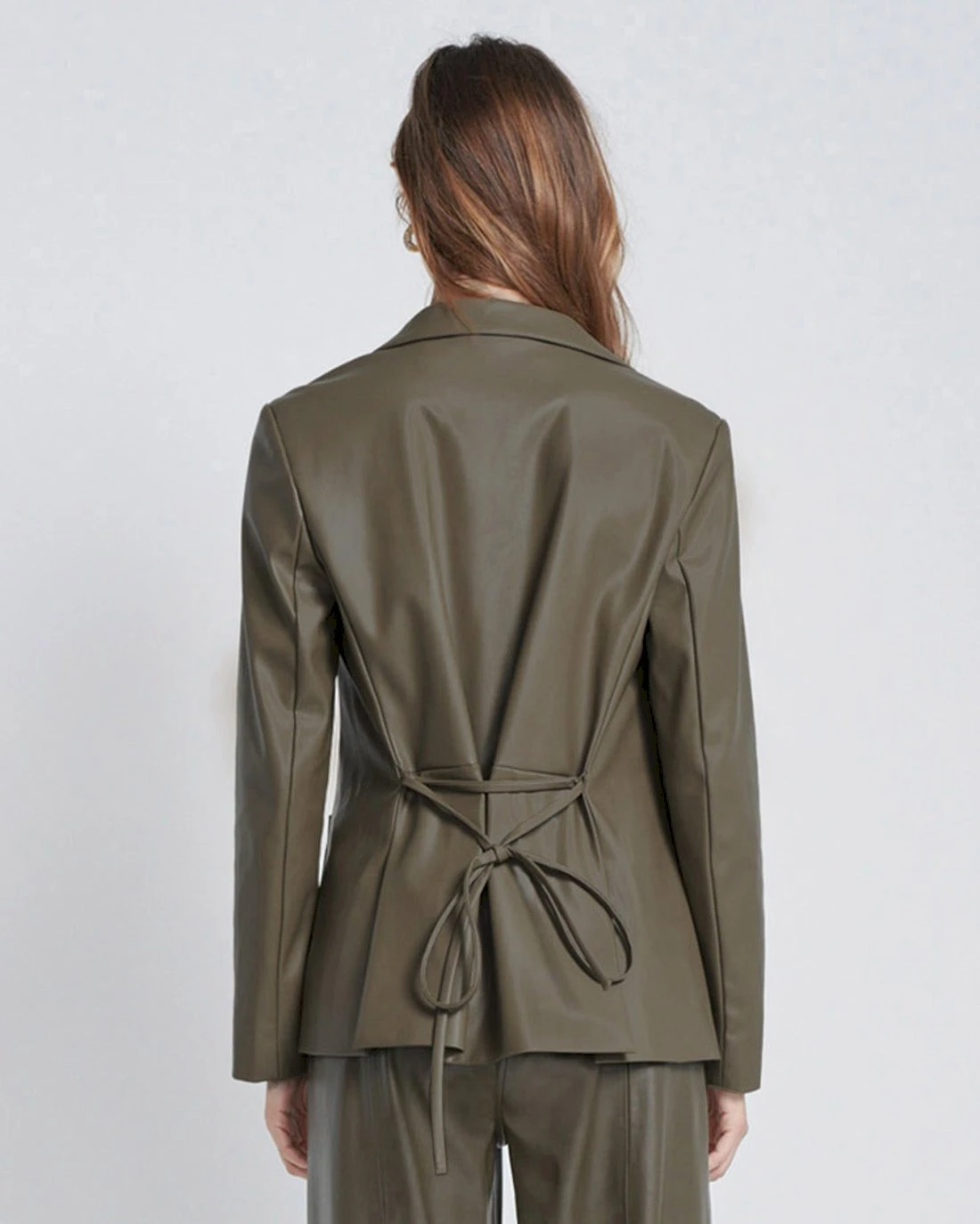 7 For All Mankind Faux Leather Tie Blazer In Deep Lichen