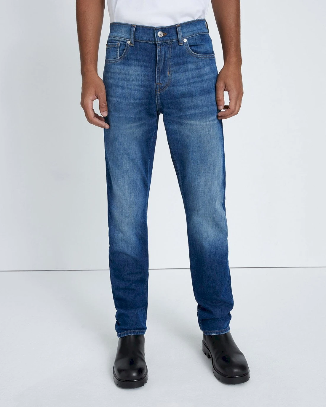 Our ever-popular slim fit silhouette crafted with Left Hand denim delivers your softest, most comfortable feel for all-day wear. Offered in a mid-blue wash, marked by whiskering and fading. This men’s jean is the perfect way to keep things casual with a tee, toss on a button down for polish.