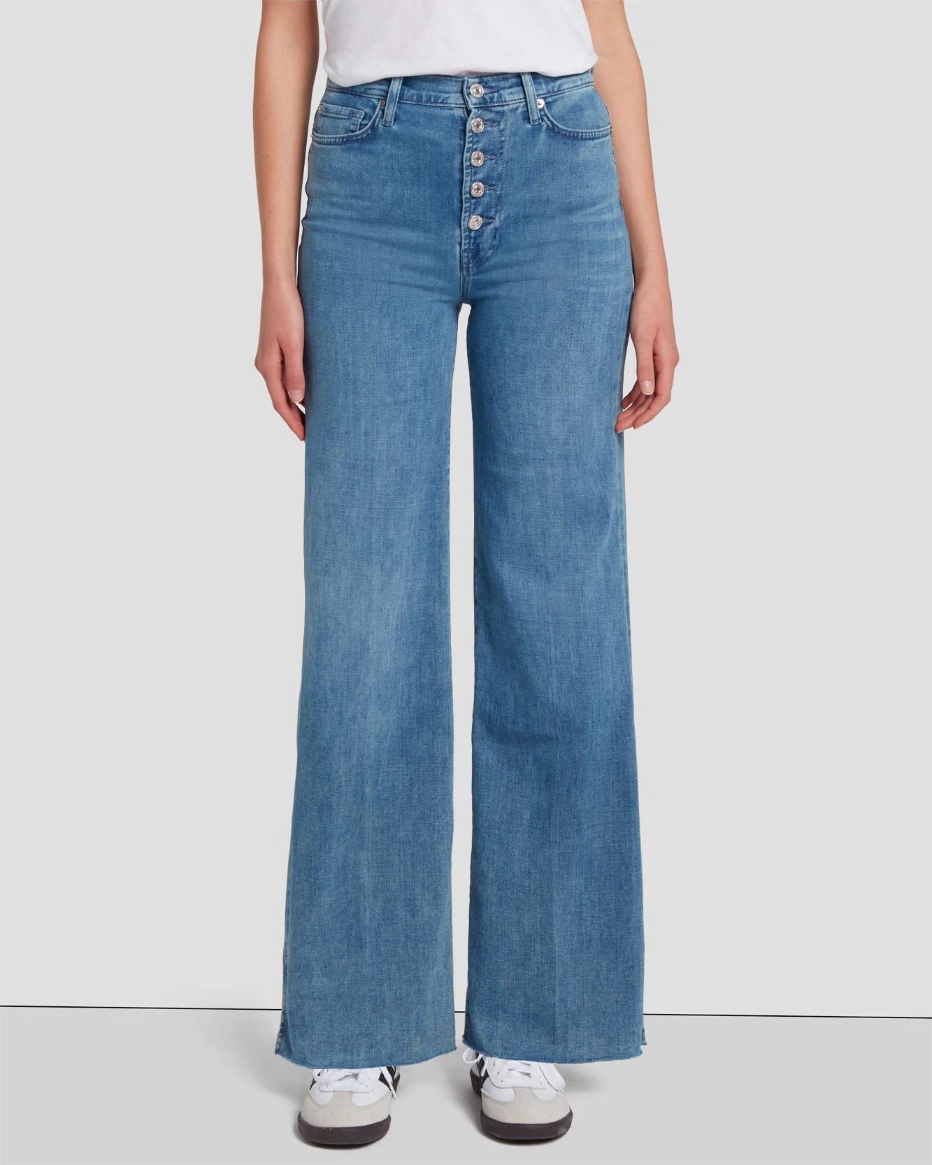 The Jo offers luxe details in a wear-all-day silhouette. The 70s-inspired wide-leg and ultra high-rise waist are finished with fashion-forward ankle slits, an exposed button fly, and a raw hem. Crafted from our Left Hand Denim, featuring a reverse weave and supremely soft feel to create your most comfortable jeans yet.