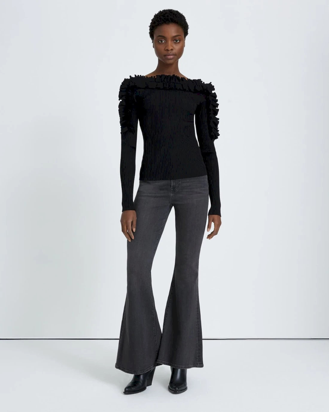 7 For All Mankind Long Sleeve Ruffle Top In Black