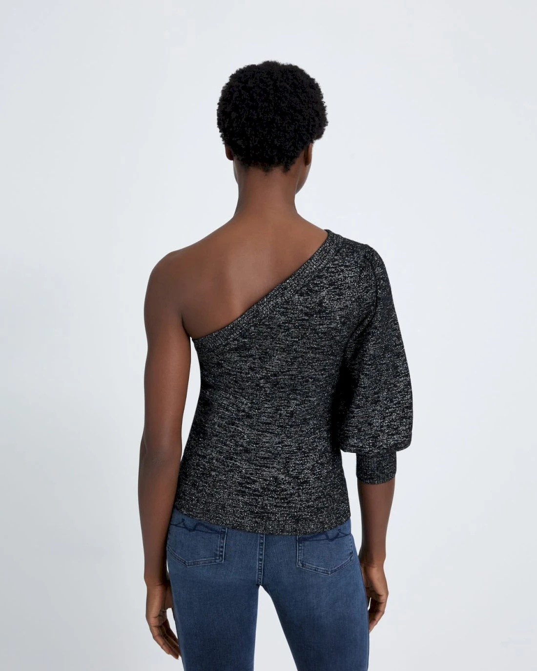7 For All Mankind One Shoulder Sweater In Black Metallic