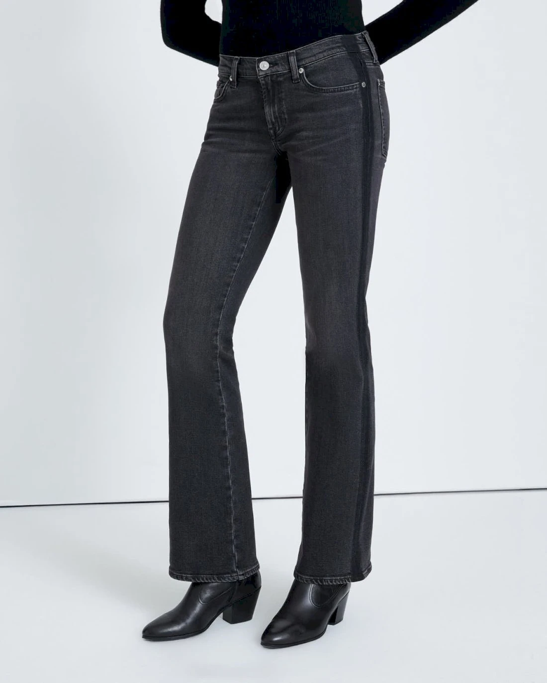 Our best-selling original bootcut goes a little edgy with contrasting side stripes and a dark wash. Cut from medium stretch denim for all-day comfort, the classic low-rise silhouette is marked by light whiskering for a worn-in, vintage look.