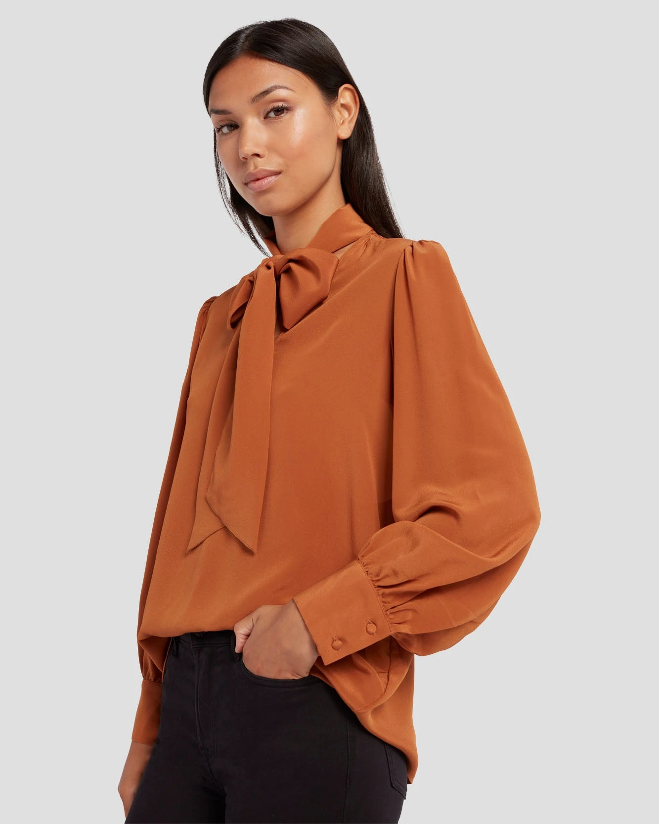 7 For All Mankind Silk Tie Neck Blouse In Ginger