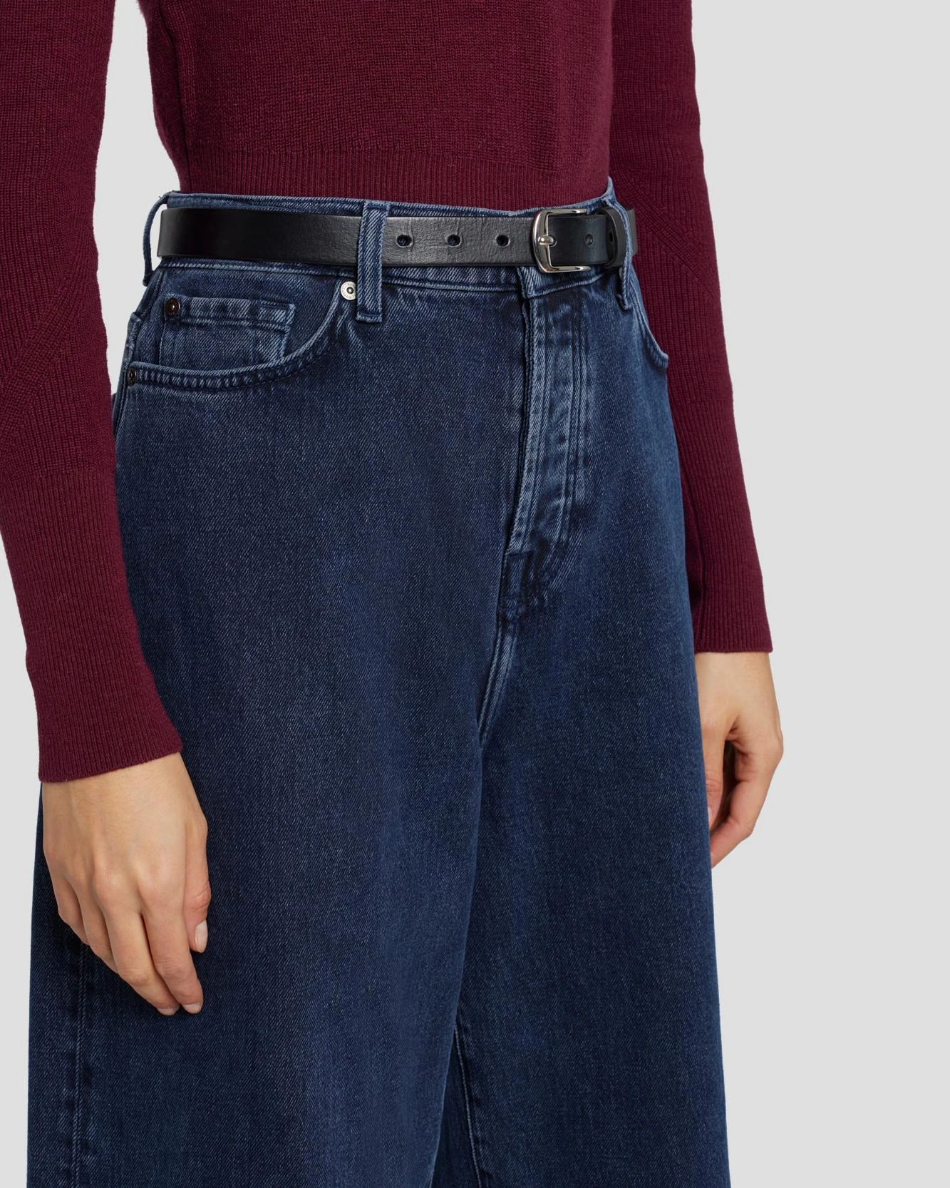 Our Skinny Belt is named for its sleek design. Crafted from black leather and finished with a silver-tone buckle, this versatile accessory will be the perfect addition to your favorite jeans.