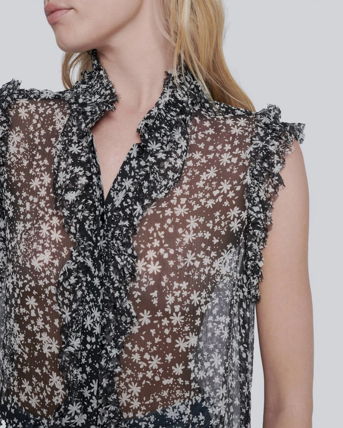7 For All Mankind Sleeveless Ruffle Top In Black/White Print