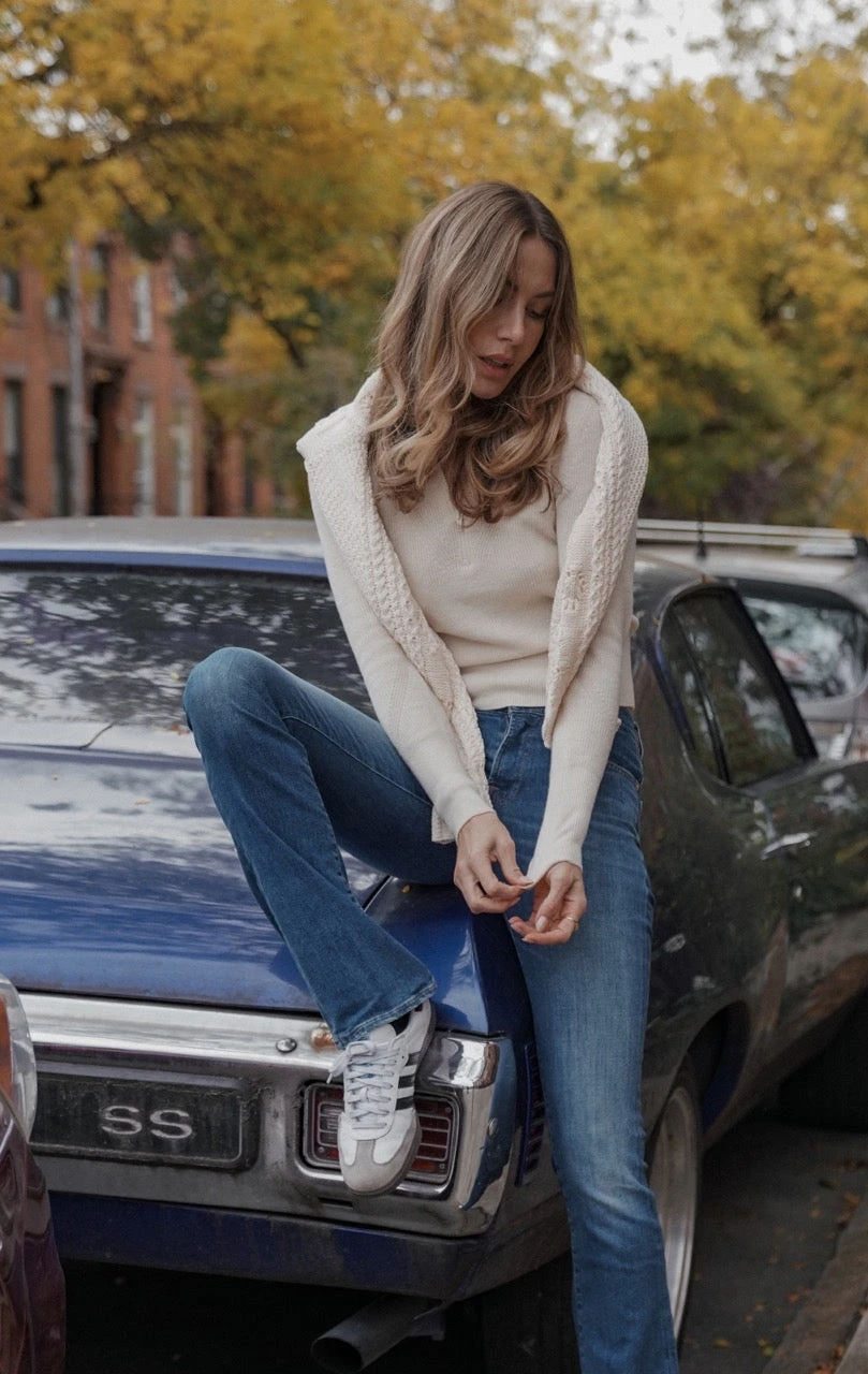 This beloved mid-rise, bootcut silhouette is updated in our latest denim innovation, Slim Illusion Earthkind. Crafted partially from organic yarns with less impact on the environment, this fabric features stretch-cotton engineered to move with you, maintain shape, and flatter every figure. Offered in a versatile dark blue wash complete with natural whiskering and subtle fading. Style with a feminine blouse and heels for a night out.
