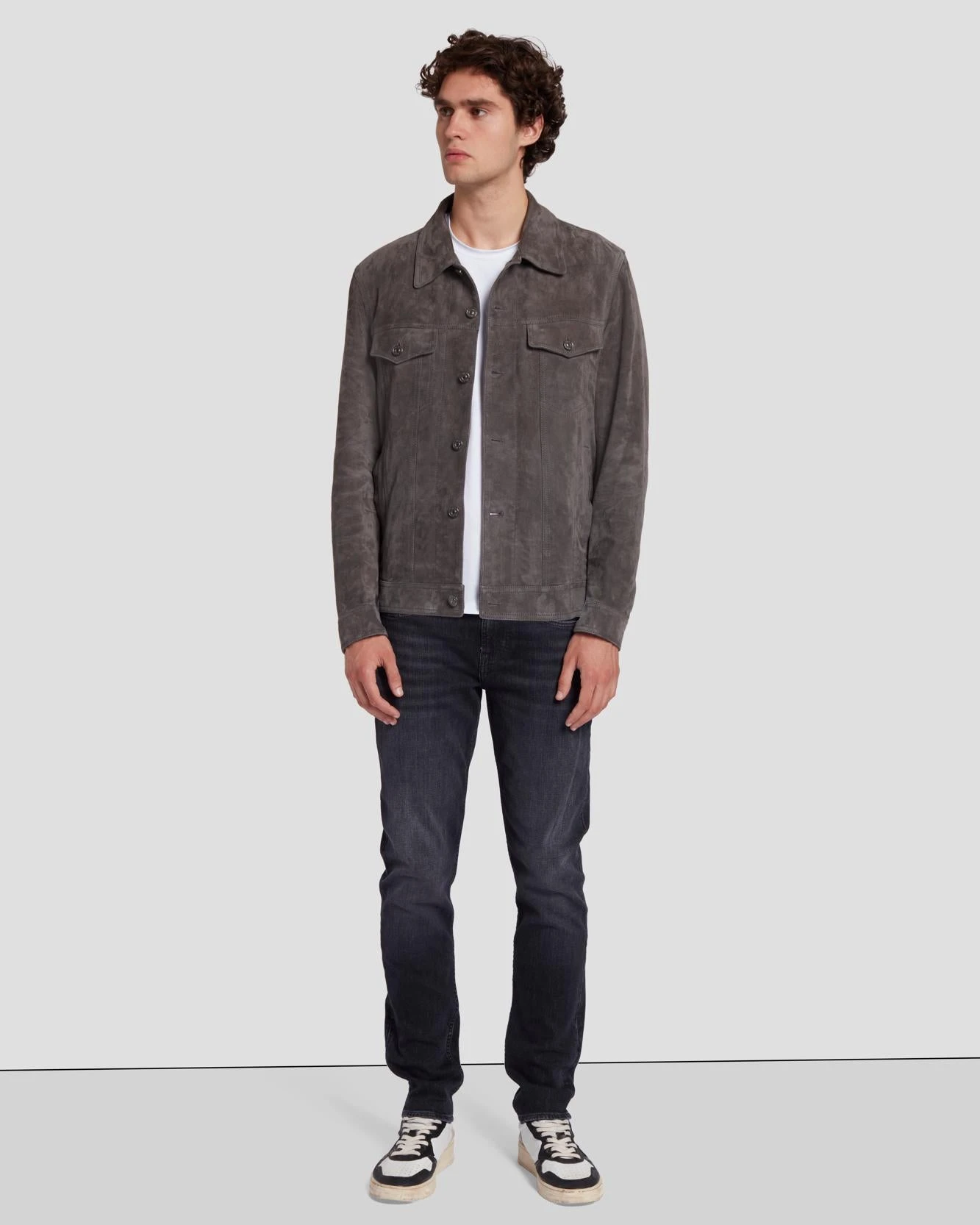 The suede jacket your closet needs. Crafted from 100% suede, this refined take on a classic trucker comes in the perfect neutral gray. The jacket you’ll be loving for years to come.