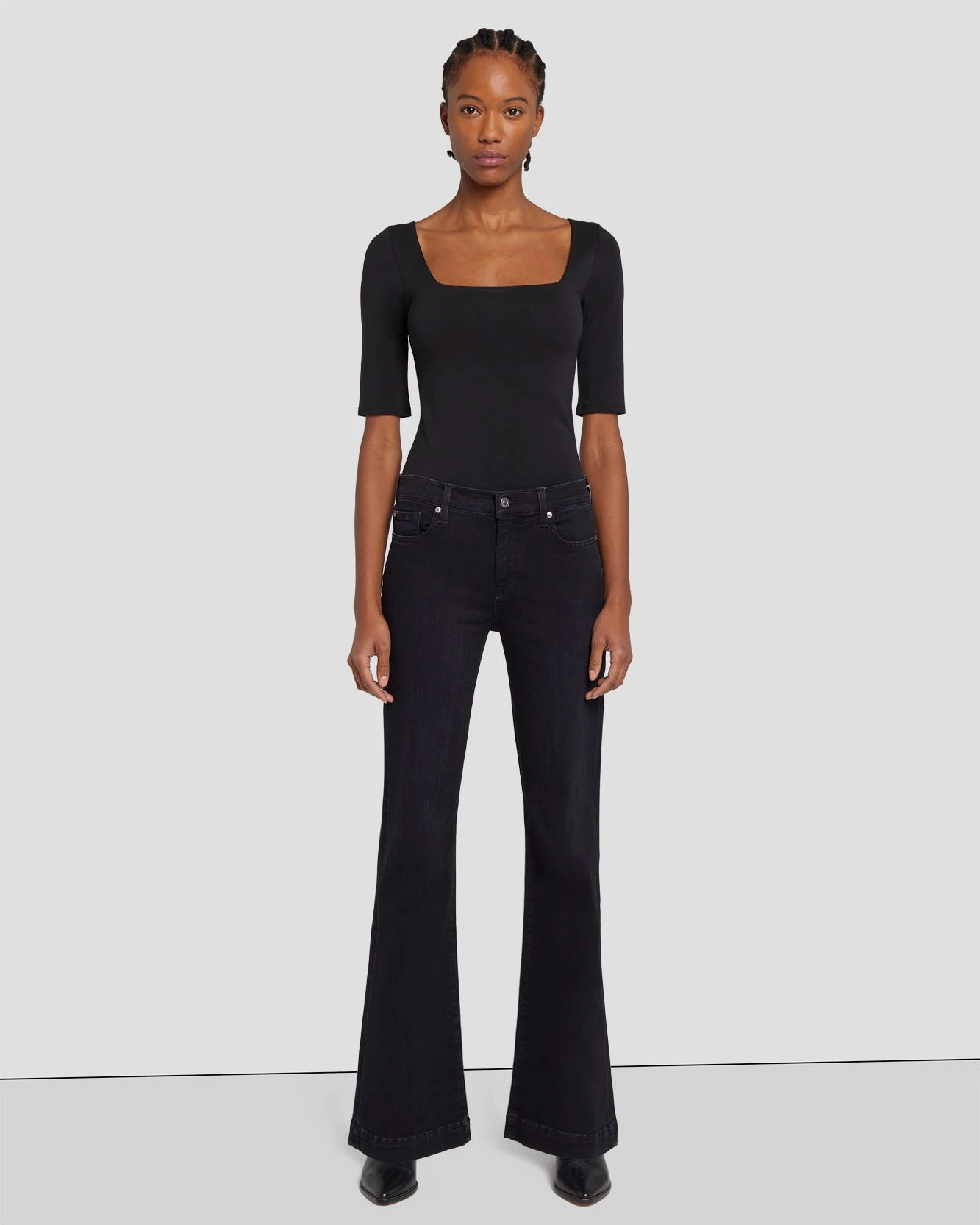 Our well-loved Dojo now comes in a shorter inseam – no tailoring needed. This washed black denim features subtle whiskering and fading for that perfectly worn-in look.