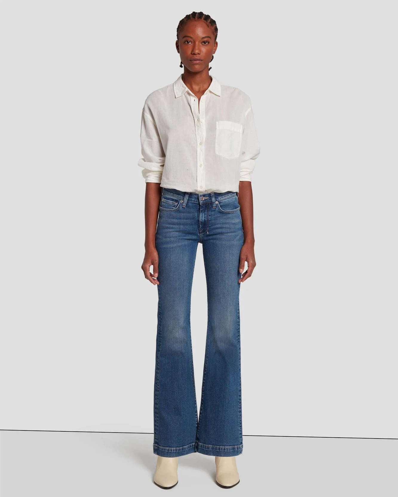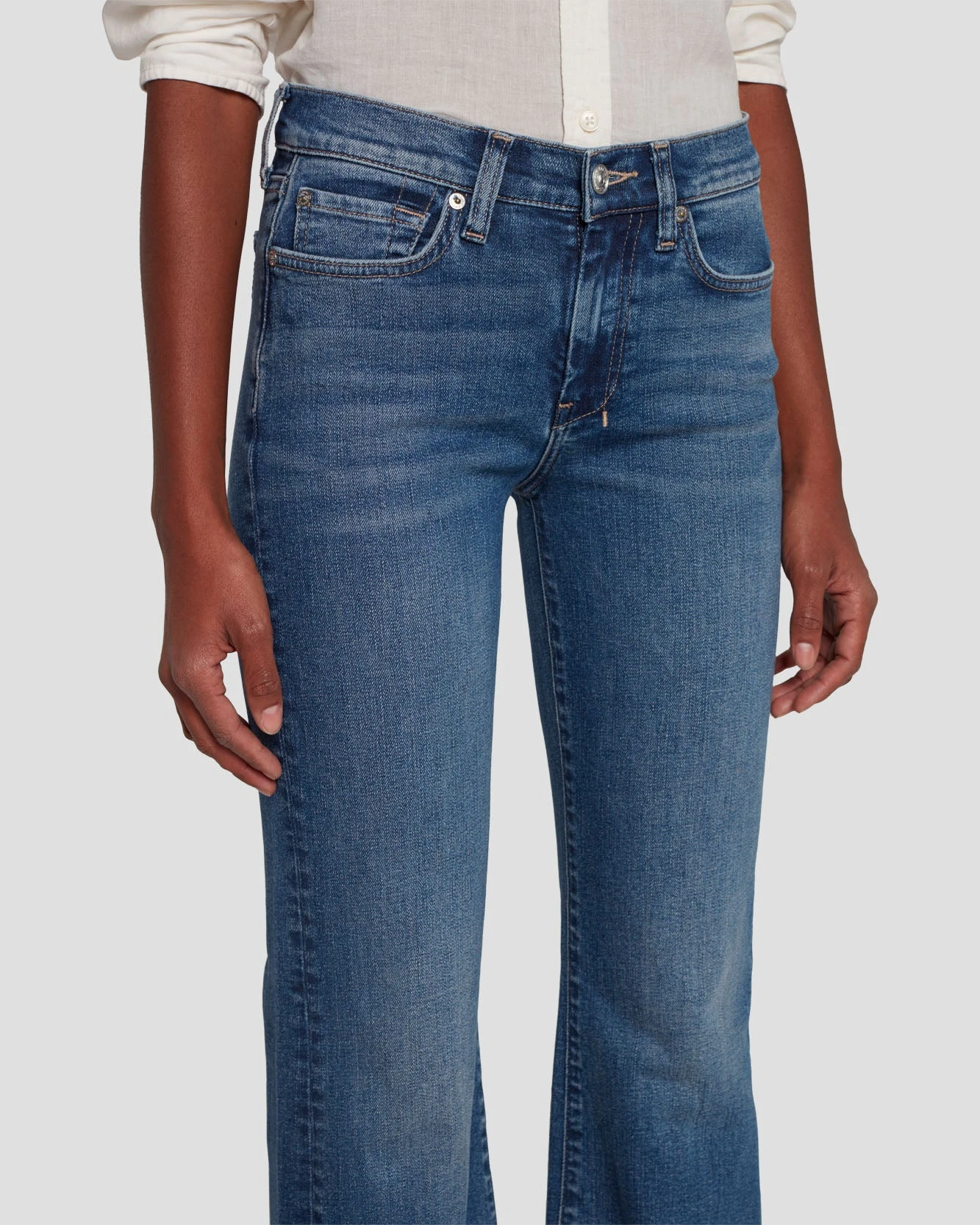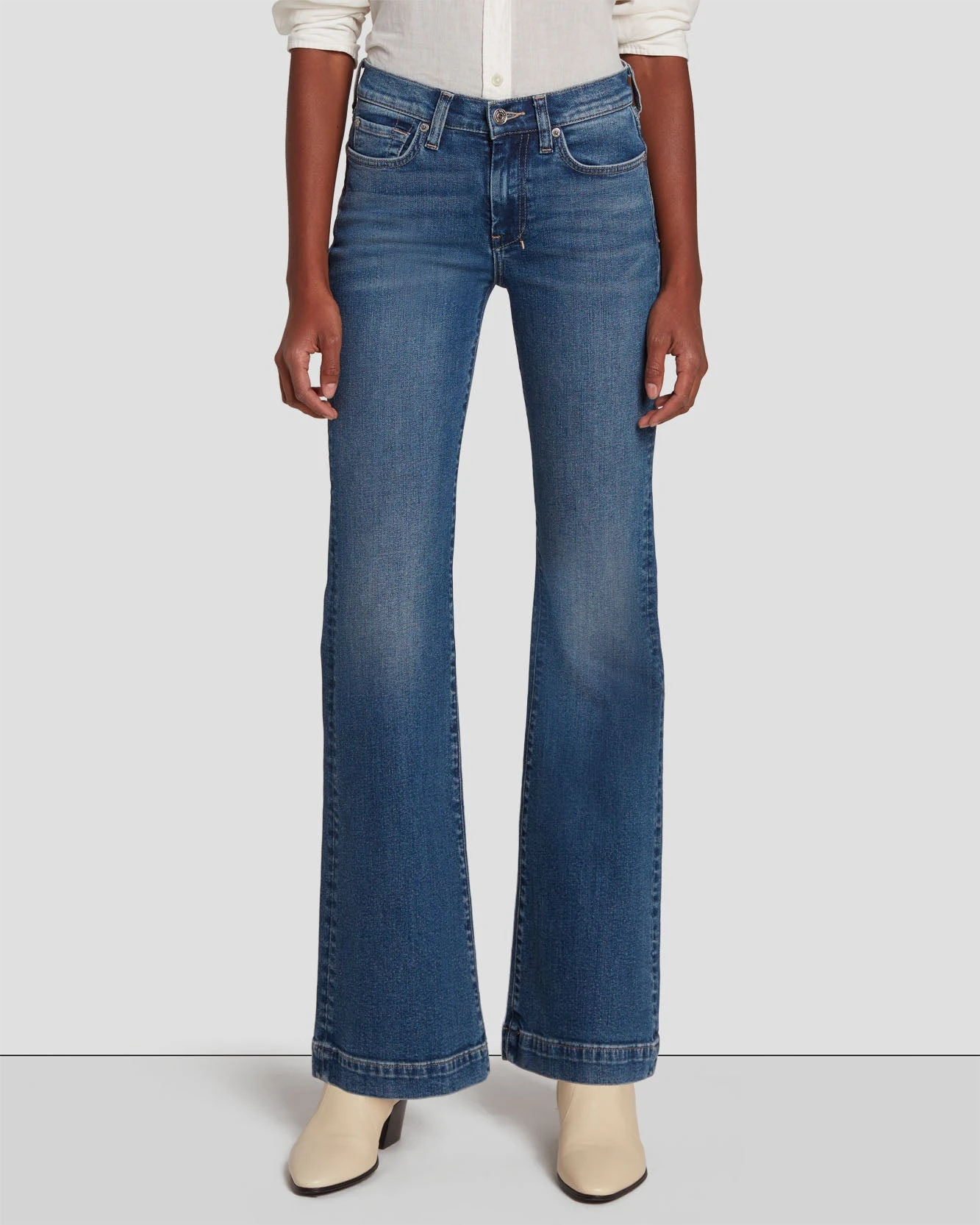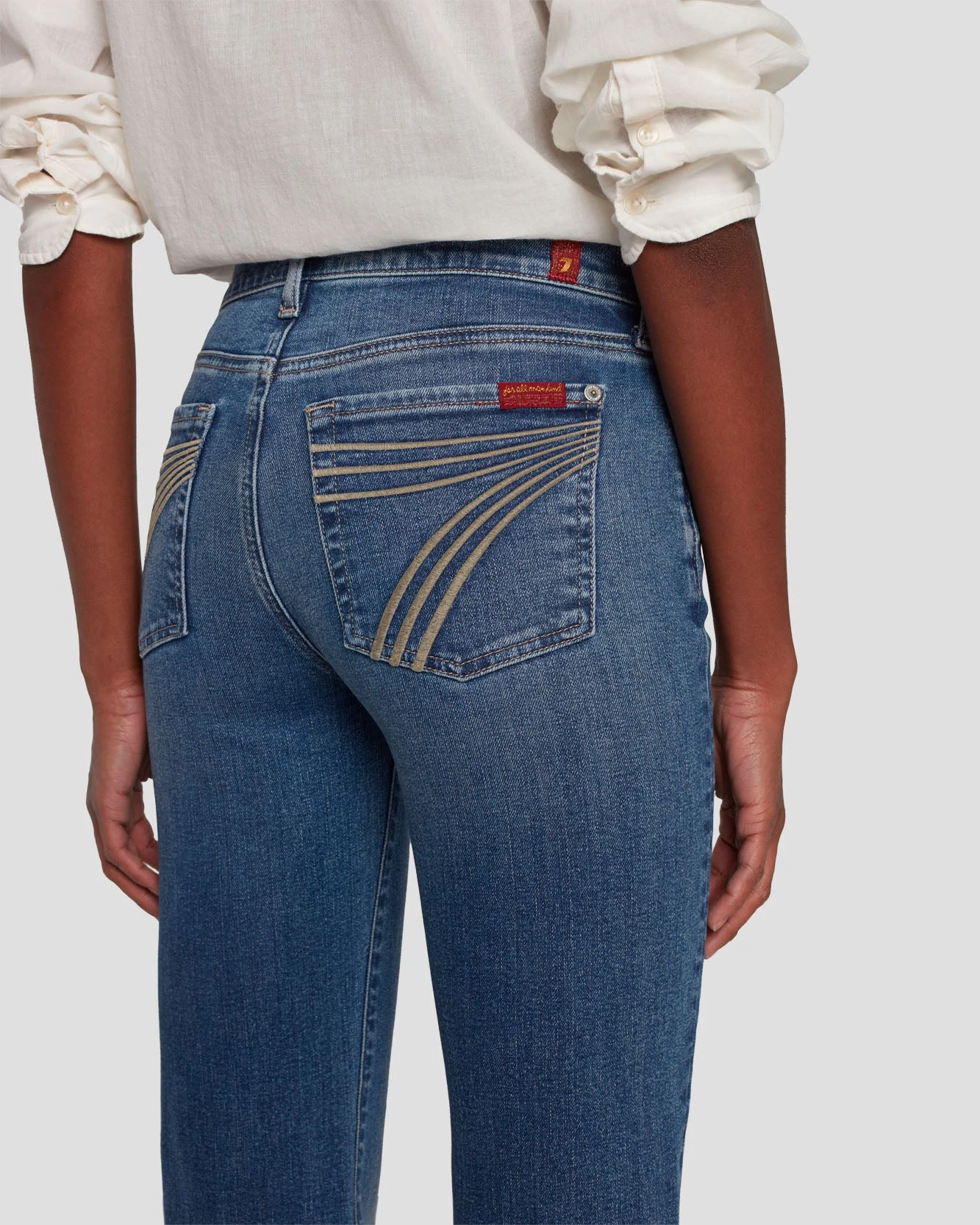 Our popular trouser silhouette goes Tailorless. So, you get the same iconic Dojo fit with a shorter inseam. Crafted in premium signature denim with comfort stretch for all-day wear. Offered in a saturated dark wash complete with our signature 7 embroidered back pockets, this pair of women’s jeans offer luxe style. These are the jeans you’ll be pairing with everything in your closet.