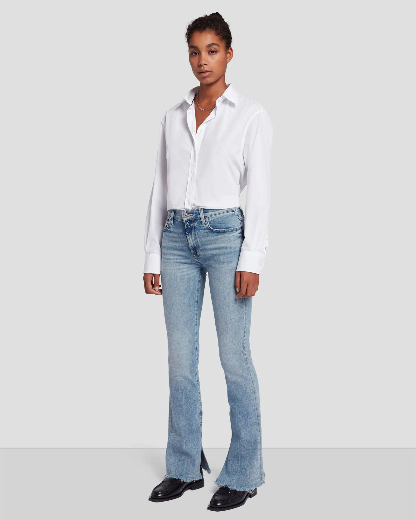 Our classic bootcut silhouette, cut with a shorter inseam. Crafted from our Luxe Vintage denim, which combines a vintage look and the perfect amount of stretch, they’re great for all-day wear. Subtle fading, side slits and a frayed hem add to that perfectly worn-in feel.