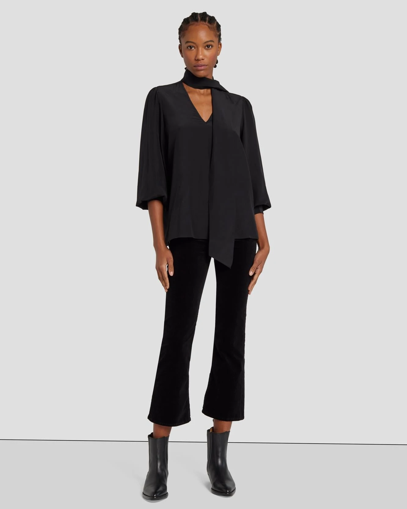 7 For All Mankind Velvet High Waist Slim Kick In Black